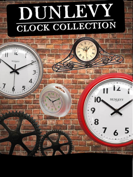 The Dunlevy Clock Collection includes a wide variety of shapes, sizes and types of clocks. The range includes wall clocks, mantle clocks, Wsetime alarm clocks, wrought iron clocks and many more packaged in attractive giftboxes. Please feel free to contact our sales office for more information.